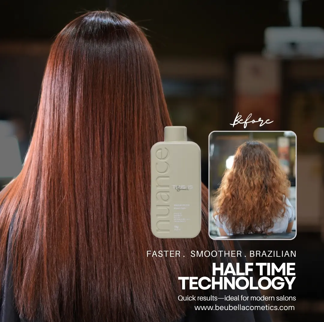 Modern salons need treatments that are effective, safe, and time-efficient. With Nuance Professional Hair Smoothing, stylists can offer clients a powerful smoothing solution that aligns the hair fiber, enhances shine, and restores overall hair vitality. By combining Brazilian innovation, advanced cosmetic technology, and nourishing ingredients, Nuance delivers professional results that transform the hair while maintaining its natural health and beauty.